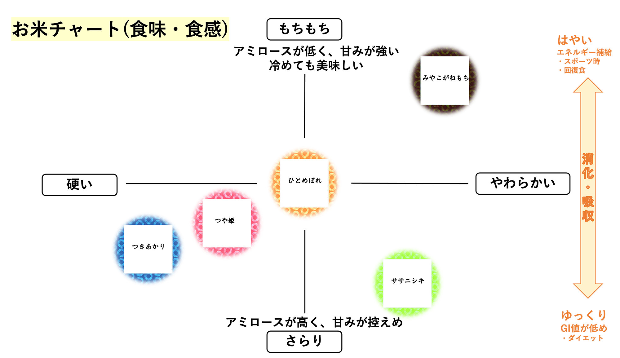 〇ひとめぼれ、つや姫と比べると、程よい粘りと軽やかな口当たりが魅力